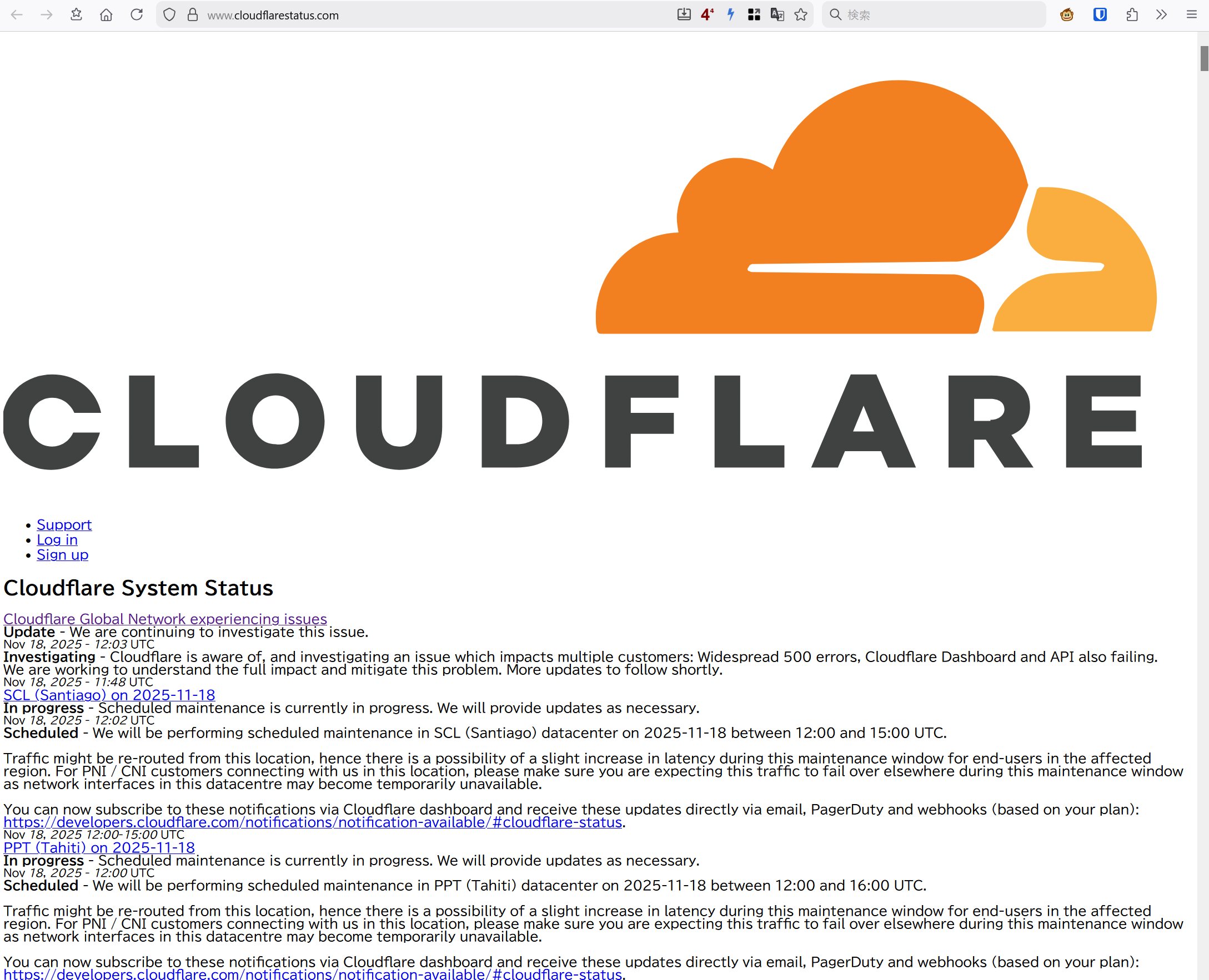 ものすごい賢い人が設計したであろうシステムでも、落ちるときは落ちるというのは、へなちょこ開発者に安心感を与えてくれます。